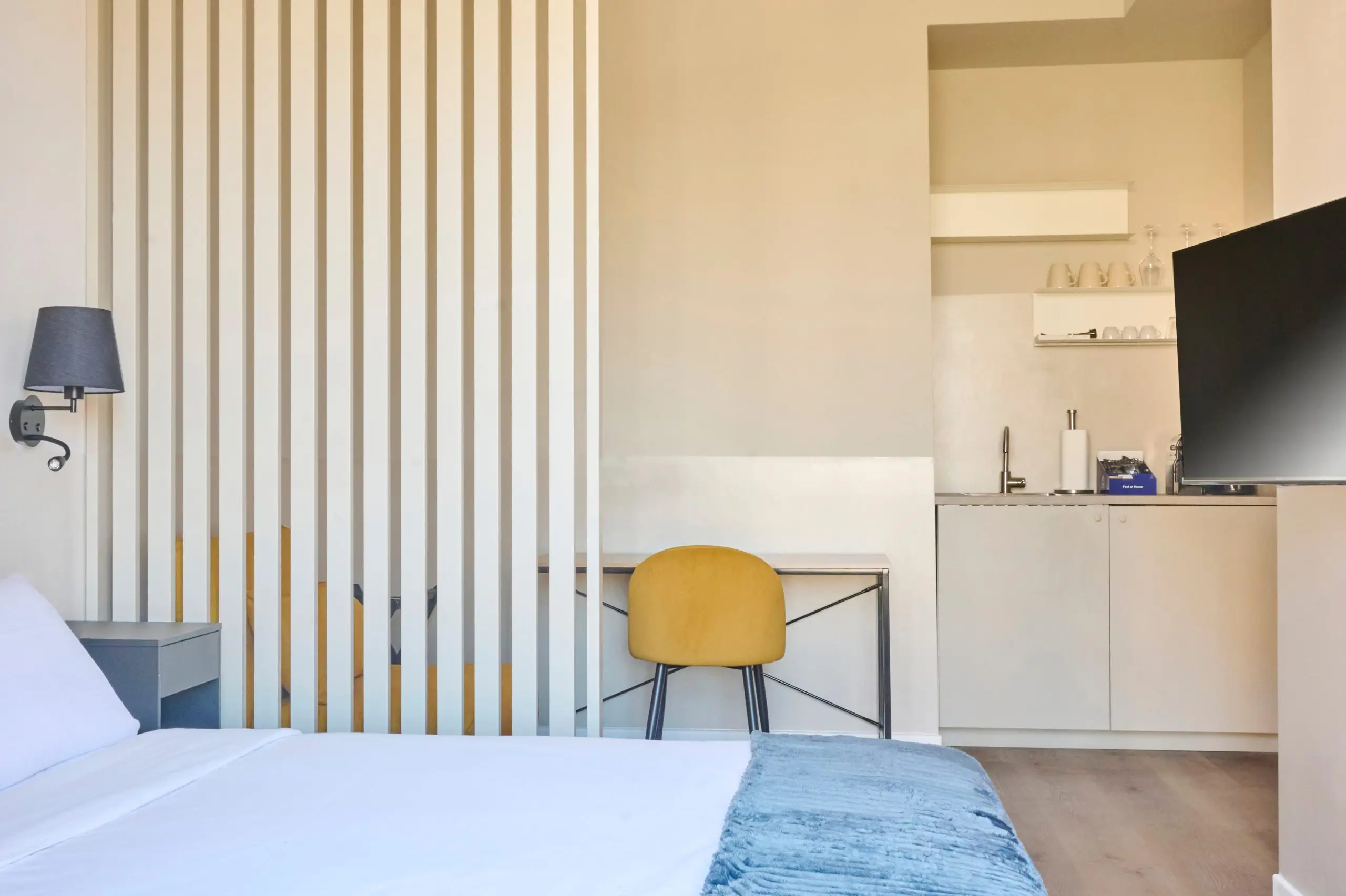 A spacious and versatile triple room, perfect for friends, small groups, or families who want to stay in the most vibrant district of Milan. The room features a comfortable double bed and a chaise longue that converts into a single bed, offering both flexibility and comfort. The modern décor creates a pleasant and functional atmosphere, while the tea and coffee corner—equipped with a kettle and coffee machine—allows you to enjoy a relaxing break at any time. The room also includes a private balcony, ideal for unwinding or taking in the characteristic views of the Navigli. The bathroom is fully equipped with a shower, towels, and complimentary toiletries, ensuring a practical and comfortable stay. Located in the heart of the Navigli, the property offers easy access to the metro and is surrounded by local restaurants, bars, and art galleries, allowing you to experience Milan at its most authentic.